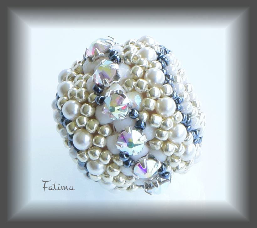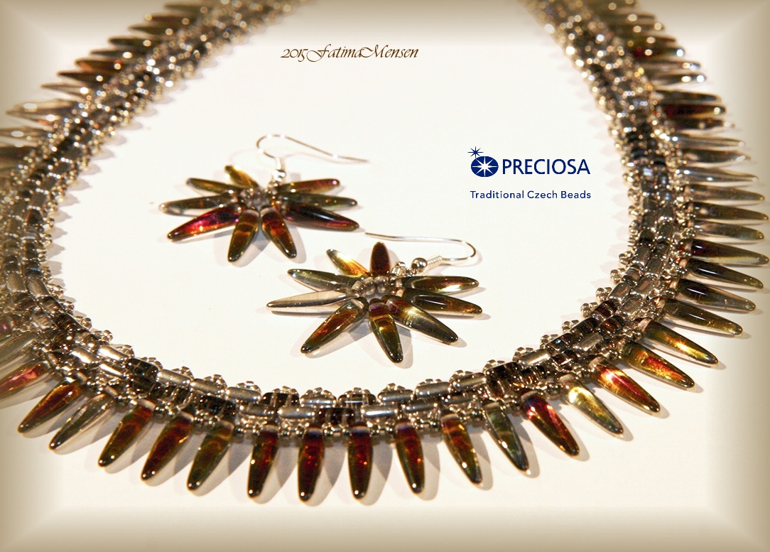 She began making chain maille and in May 2012, she attended a meeting of the Florida West Coast Bead Society. As she interacted with other talented members and began showing off her own creations, Fatima became more confident. A mere four years later, Fatima is enjoying success on several fronts. An ongoing member of the Florida West Coast Bead Society, Fatima will teach her Moonlight necklace in June, free for members and guests. (Moonlight Necklace won a Preciosa Czech award in December 2015.)